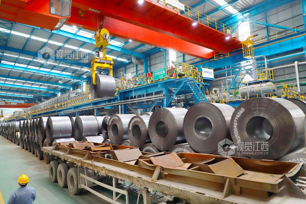 行車正在對(duì)鋼卷進(jìn)行吊裝作業(yè)(廖海金 攝)