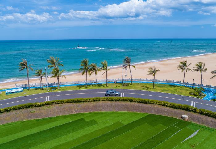 2023年8月5日,航拍海南環島旅游公路瓊海博鰲灣段。近1000公里的海南環島旅游公路串聯起海南12個沿海市縣共9類84段不同特色景觀區域。 中新社記者 駱云飛 攝