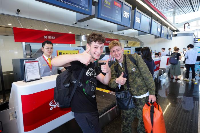 2025年5月7日,旅客在海口美蘭國際機場準備乘坐HU7911航班,該航班從海口飛往英國倫敦,標志著“海口?倫敦”定期客運航線正式通航。中新社記者 駱云飛 攝